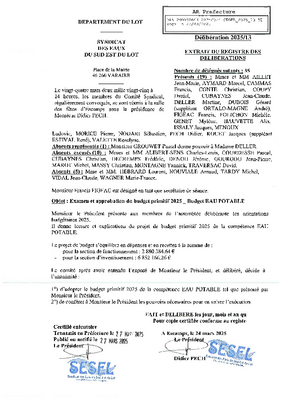 Délibération 2025-13 : examen et approbation du budget primitif 2025 _ Budget EAU POTABLE