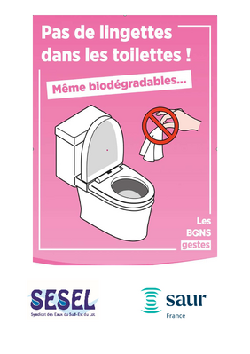 Le Syndicat des Eaux du Sud-Est du Lot tient à rappeler de ne pas jeter les lingettes même biodégradables dans les toilettes.